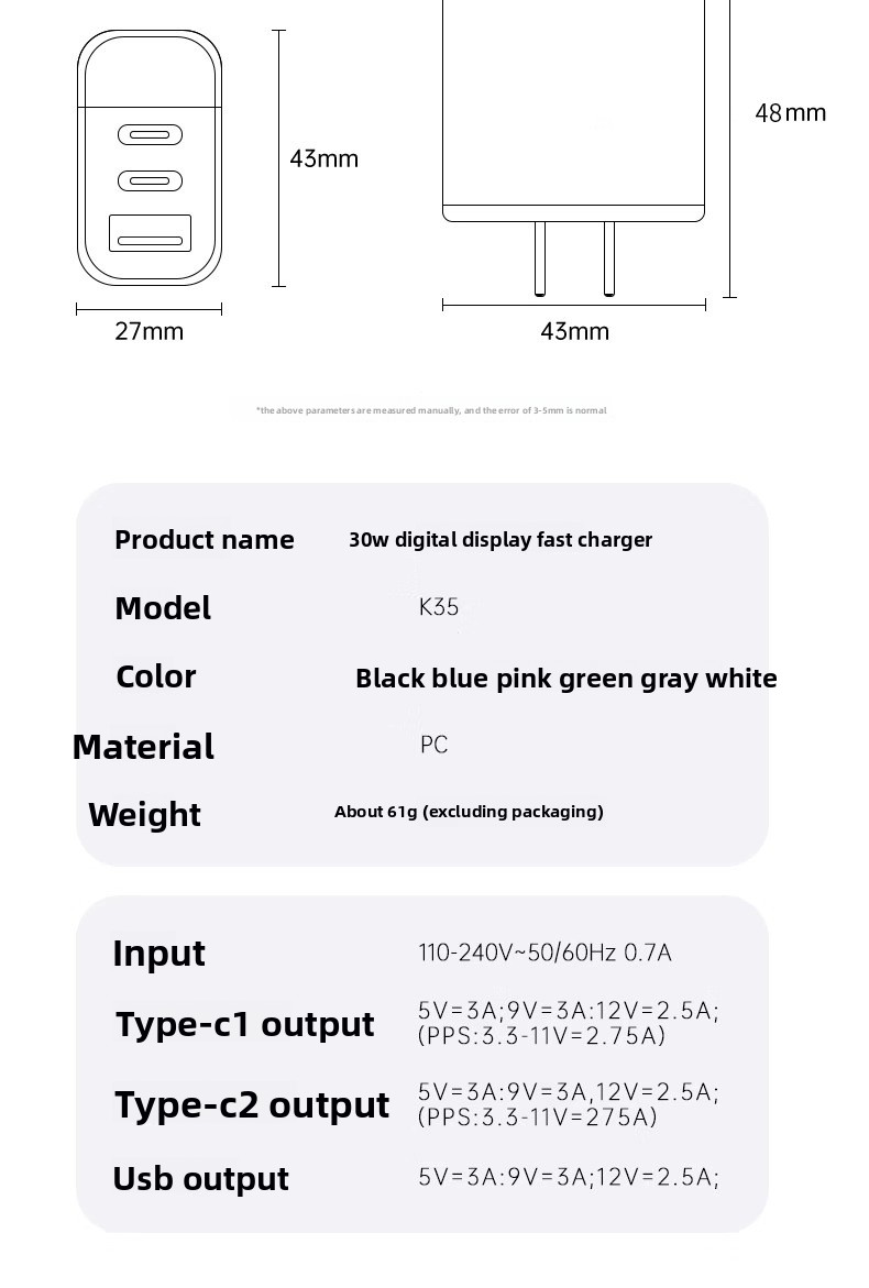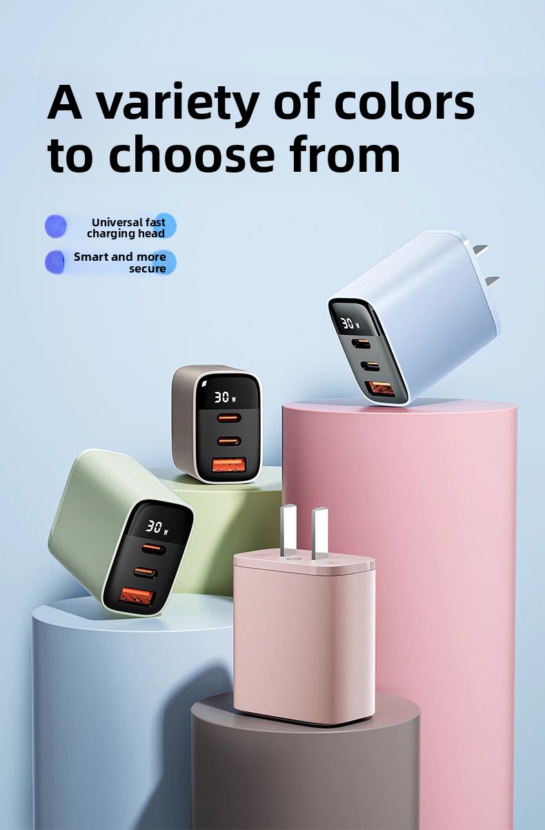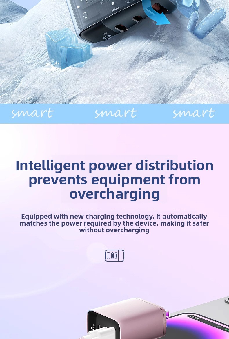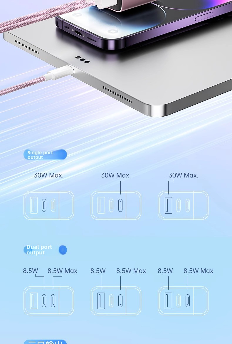 Triple Ports: Features dual Type-C and one USB port for simultaneous charging.