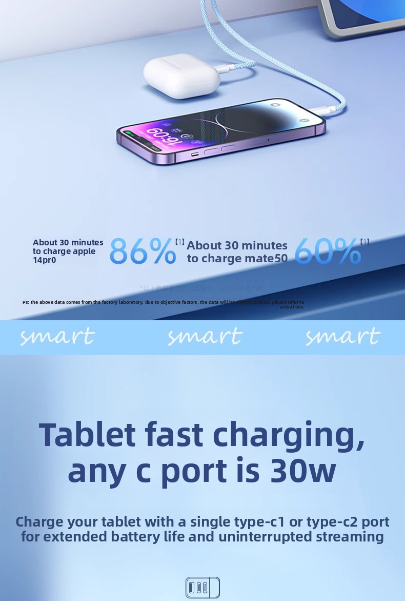 30W Fast Charging: High power output for quick charging of compatible devices.