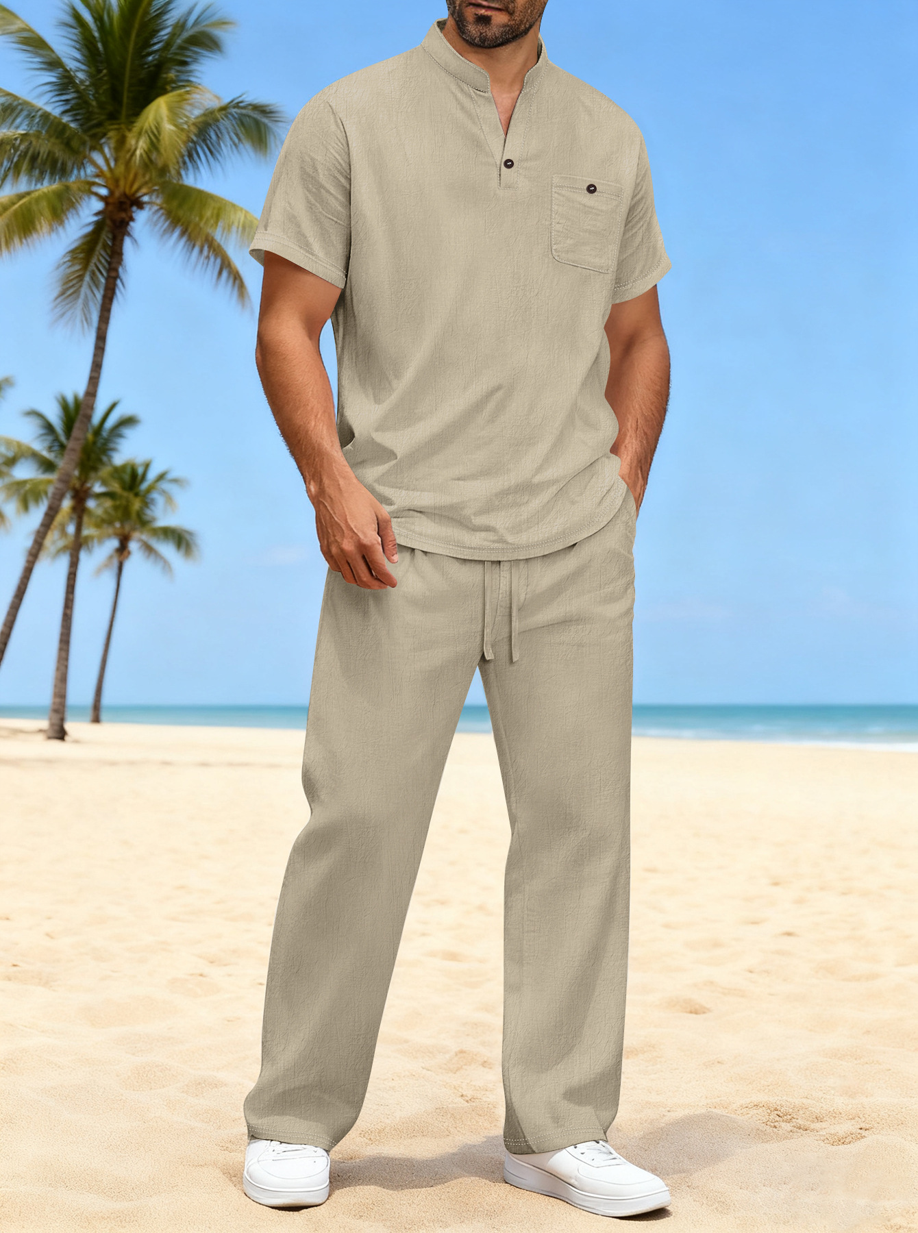 Cotton And Linen Summer Men's Solid Color Casual T-shirt Short Sleeve Shirt