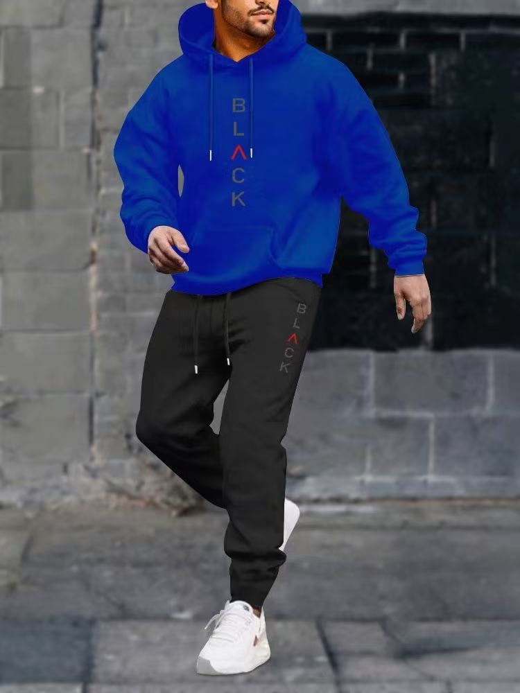 Men's casual fleece hoodie with letter print